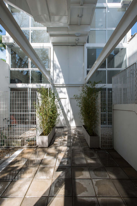 Conjunto de pequeña escala de baja densidad, construido en un terreno de 8.66 por 43.30 metros en el Barrio de Villa Urquiza, al noroeste de la ciudad de Buenos Aires. Consta de espacios cubiertos en dos cuerpos construidos en bloques de hormigón visto, y de losas prefabricadas tipo Cerbelu, distribuidos en 4 pisos de viviendas multifamiliares en 2 niveles con acceso a terrazas privadas, y un subsuelo de sala de máquinas de ascensor hidráulico, gabinete de medidores eléctricos y tanque sanitario, y un área de expansiones y circulación con una estructura de perfiles metálicos independiente, que configura los límites de las fachadas del frente y del contrafrente con balcones-terraza de malla electrosoldada y deck de madera, profundos y de superposición desfasada, afín de lograr la mayor relación con la luz exterior y con los árboles preexistentes del Barrio mayormente libre de edificios de gran altura que generen grandes zonas de sombra.